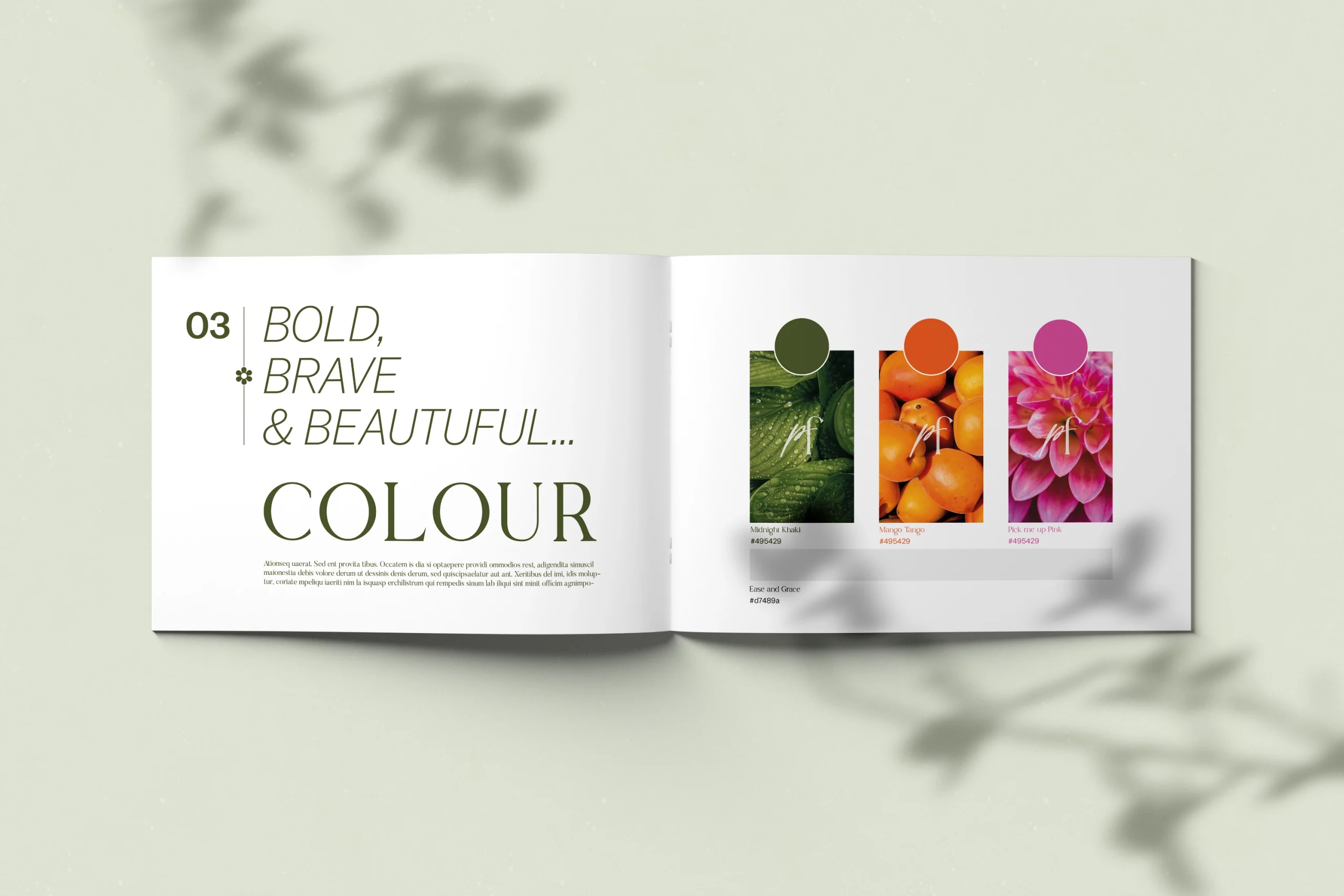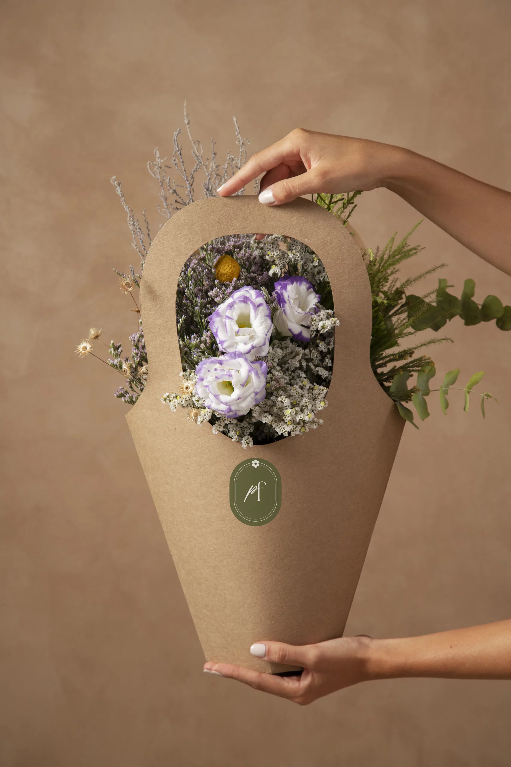 A painter in her past life, Gina now paints with flowers in her beautifully free style. The brief was to create a visual identity that reflected this story. The combination of the script with this bold and feminine serif typeface illustrates the fusion of her unique talents. The letters 'P' and 'F' are used to create a secondary logo to be used on social media and as a stamp onto wrapped bouquets.